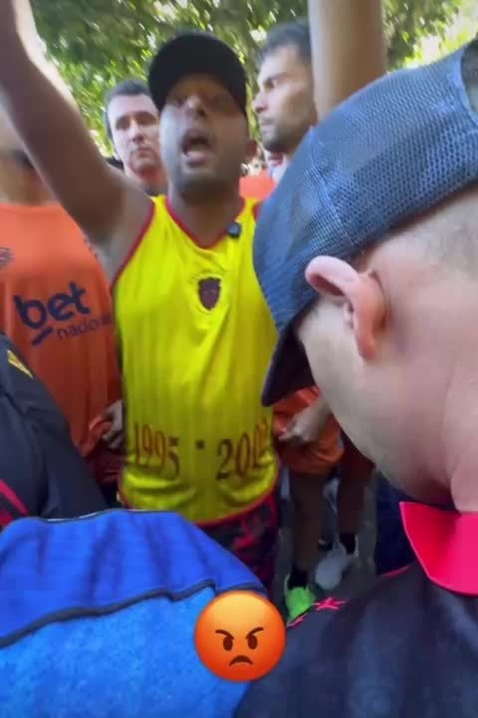 "Sobe a base, joga outro time... Mas vão embora porque vocês não estão representando a camisa do Maior do Nordeste, c*. Ó (sic) o que está acontecendo p*, a gente está aqui no feriado hoje, p*, a gente está todo mundo aqui porque ama essa instituição, p*, e vocês..." - esbraveja.